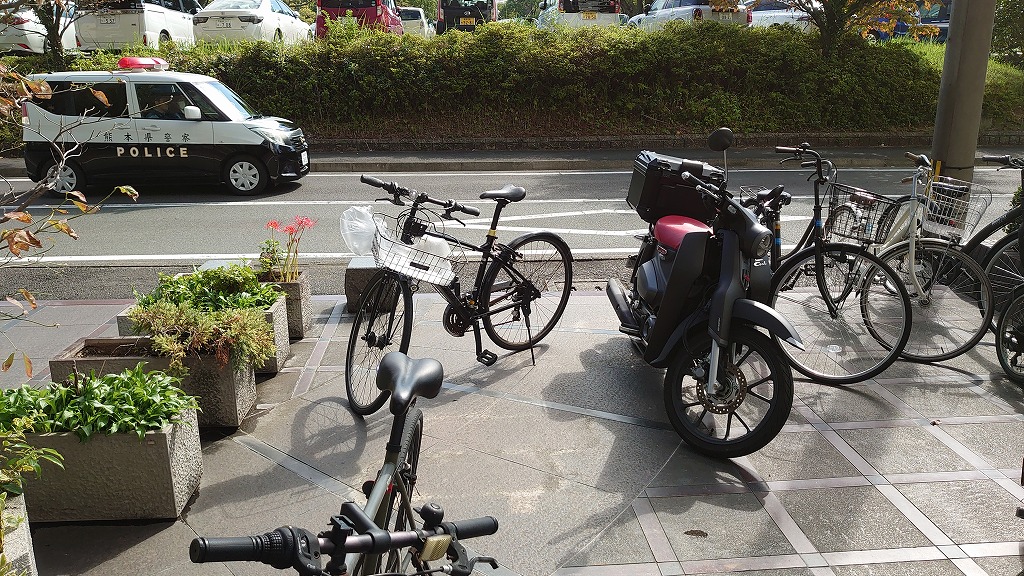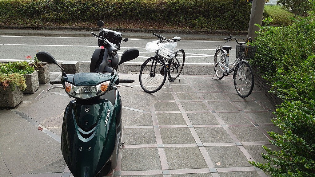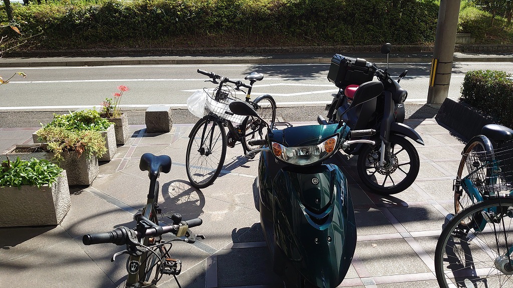 遅めに出社しているため、ほぼほぼ最後に駐輪します。道からちょっと歩道に乗り上げ(当然乗車したまま)さらに駐輪場所の段差を乗り越えて駐車している関係で、多少のスペースが無いとスムーズに止められない